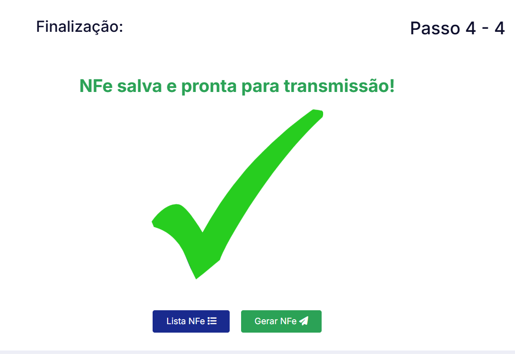 - Será notificado a seguinte mensagem: NFe salva e pronta para transmissão!