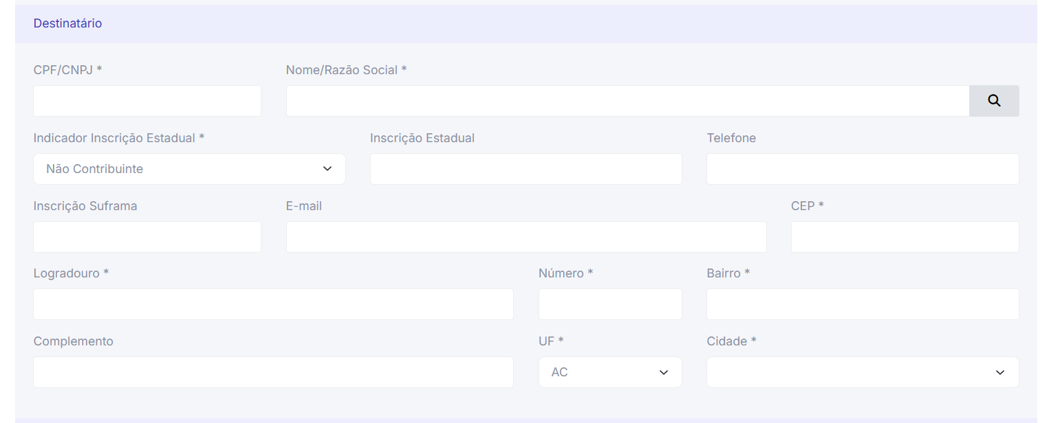 - CNPJ(Busca automatica dos dados cadastrados no sefaz)