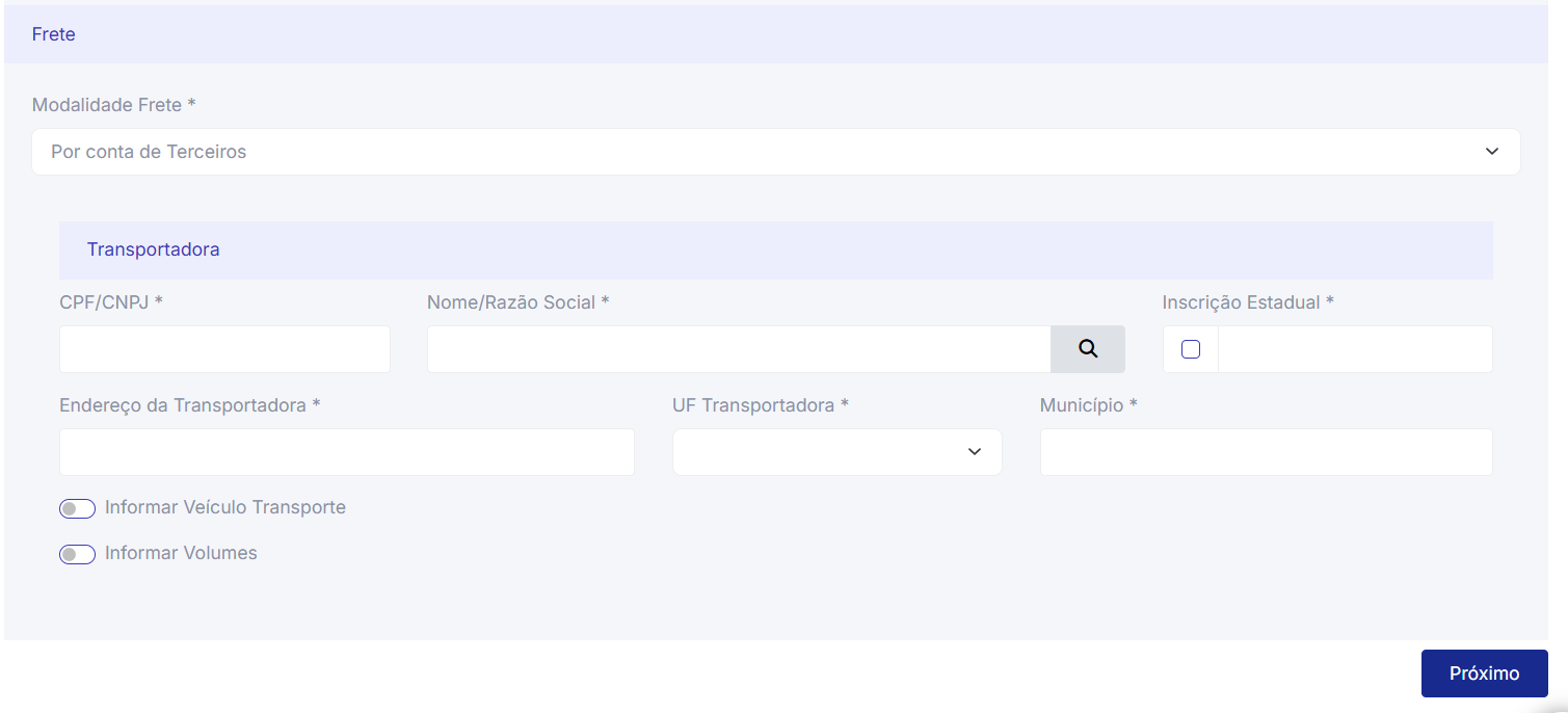 - Por Conta de Terceiros (2): O frete é pago por terceiros.